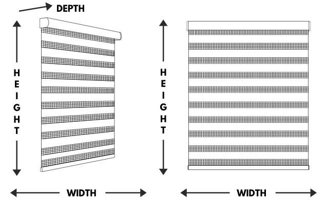 - Outside mount: Fabric will be 2.8cm less than ordered width.