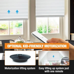 You’ll love how effortlessly these blackout blinds block out 99% of sunlight, giving you restful sleep any time of day. Plus, with our optional motorized lift system, you can open and close your blinds with the touch of a button—no need to leave your cozy bed.